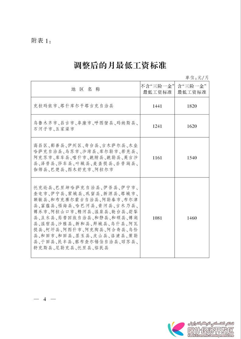 關于調整新疆維吾爾自治區最低工資標準的通知